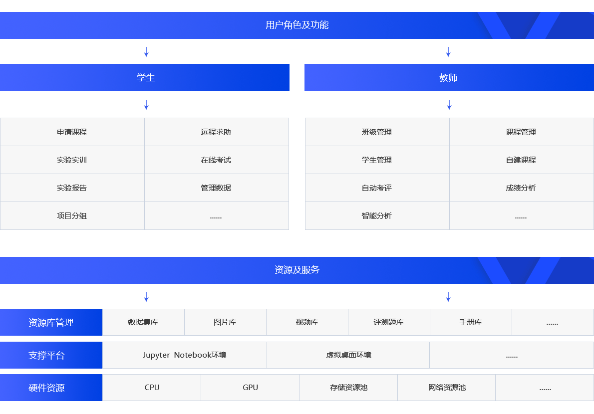大数据实验实训平台是在云计算、大数据、人工智能等基础上,以智能化容器集群技术搭建的“一站式”大数据、人工智能等相关专业的实验、实训、实战平台,支撑“教—学—练—赛—研”等全闭环的专业建设、人才培养、实验室建设等整体解决方案